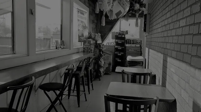 a black and white photo of a store