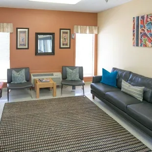The rooms were big. She also had a standing closet, chairs for us to sit in, a restroom and a dresser. It was easy to let outside light in.