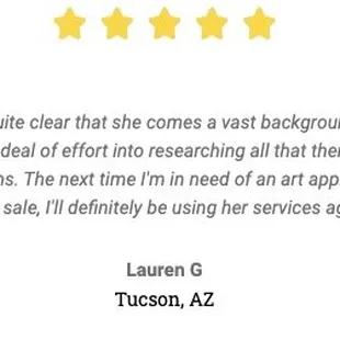 I engaged Catherine's Estates and Appraisals to appraise some items. I gave her my address and she provided me with her fee, which I agreed to. On the day just prior to our scheduled visit, she called to tell me that she would charge an additional $150 for travel. She knew where I lived in the intial conversation and did not tell me of the travel fee at that time. To appraise my items, she asked for my Wifi password and logged in to the Live Auction website. She used this website to appraise my items. Some of my items are ancient and there are not comparables on Live Auction. She did not know the time periods or countries of origin of any of my pieces. She guessed at some things, which I Googled while she was on-site and corrected her for. She gave me no written documentation. I was so taken aback by her obvious lack of knowledge that I did not have her appraise all of my items and ended the meeting early. I have since had a qualified appraiser appraise my items that verified that her assessments were laughable.