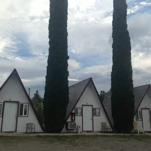 How does that yelp line go? "I really wanted to like blah blah blah, buuuuuuuuut..."From the outside, the Chalet Village Motel looks like an adorable little A-Frame motor inn from the 50's. The lady at the front desk was friendly and checked us in quickly. We had a great conversation with the locksmith as well. The rooms were quaint. My room had a full size bed and a twin bed separated by a night table with a lamp, an overstuffed rocker, a small refrigerator, microwave, and a small TV. The inside of the A-Frame is really cool knotted pine. The place was rustic and I was really diggin' it! The room was a little warm so I turned on the evaporative cooler. It was loud, but cooled down the small room rather quickly. I was rather exhausted after a long day of field work so I took a quick shower in the small stand-up shower stall and got ready for bed. The bed was small, but comfortable, so I was good. Everything seemed to be perfect, until I had to use the bathroom at 3:30 in the morning.Let me just say, when I crawled out of bed, it was C-O-L-D!!! Now it is the beginning of Fall, and it's in the mountains so it's my own fault for not bringing warmer pj's. No Biggie. But after using the bathroom, the toilet kept running. It was so bad, no amount of jiggle to the handle, or Chuck Norris karate kick was going to solve the problem so I shut the water to the toilet off and went back to bed. I woke up the next morning and was getting ready to head back out into the field when I noticed the spider webs in the corner of the bathroom. Perhaps I was just too tired to notice them the night before. I'm not sure. But when I closed the door to the bathroom, I noticed there were quite a few more behind the door as well. How much effort does it take to use a broom? I know this isn't the Ritz Carlton, and I don't expect much when you stay at a place like this, but I do expect the place to be clean. The Chalet Village Motel is good for what it is, a low budget, no frills motor inn. All in all, I liked the place, and would have stayed there again, however, we ended up being moved to the Best Western about 15 minutes away on the next trip and it was very nice for just a few dollars more.