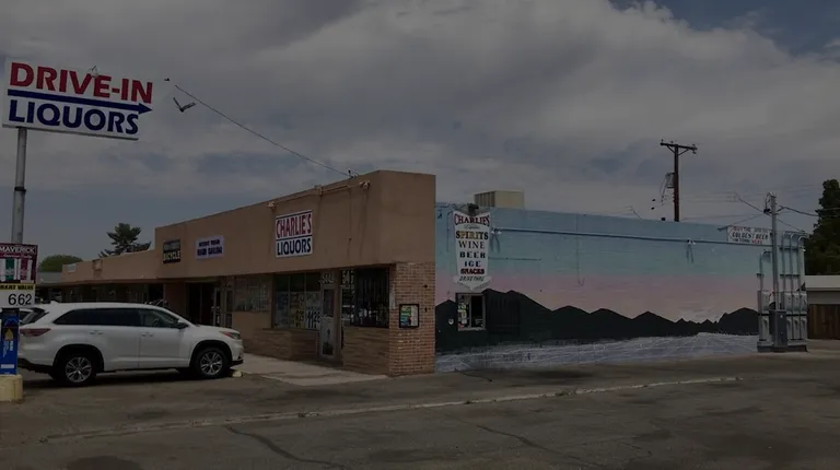 a car parked in front of a drive - in liquor store