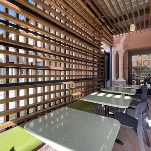 a table and chairs outside a restaurant