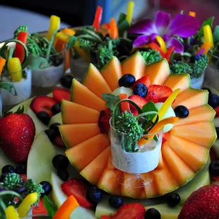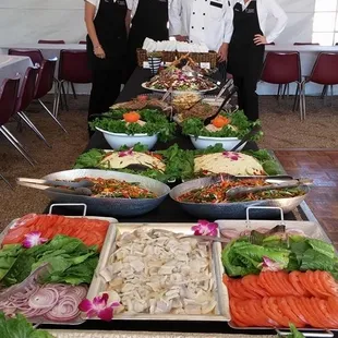 "Chris's catering along with Marcos outrageous cake was perfect. The catered dinner with Chef Chris' included rosemary lemon chicken (knock out!) and killer side dishes (Peruvian potatoes with all sorts of yummy herbs, grilled red peppers and asparagus) went over early well with our diverse crowd. (It's hard to meet everyones needs but I think he actually did!) The appetizers were stylish healthful and so plentiful that they could have been a meal within itself. Great portion sizes and the price was very reasonable. Our office wished Chris and staff could cook for us every night."-- Lauri K .