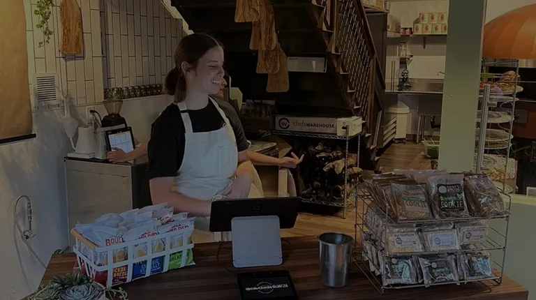a man working behind a counter