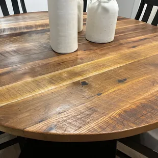 I did not get the table exactly how I wanted it! They talk about custom jobs but can only do it on certain pieces of furniture. I wanted the vintage look on a elder wood farmhouse table and he said he could do it. But it when we got it, it was not what we wanted. I should have known better because he kept pushing the pine wood which we did not want. I am stuck with a $1500 table that I do not want.