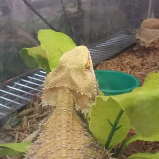 A sick bearded dragon on the sales floor of desert pet. They haven't gotten him any vet care.