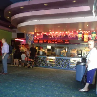Good:We enjoyed the movie. The price of the movie was quite good.We didn't use the concession stand, but it appeared to be fine.Needs improvement:The facility is dated. Old seats (uncomfortable), carpet, etc.When we entered the theatre where the movie was to be shown, all the lights were off. We had to use the light on our cell phones to navigate and find seats.The facility is dirty at all levels. Entry/foyer, bathrooms, hallways, theatre. No paper towels in men's and women's bathrooms and the hand dryer blowers didn't work either.