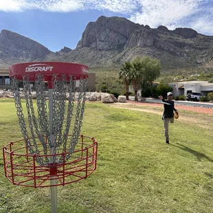 This review is for the 18 hole Disc Golf course that was recently installed on this 9 hole Ball Golf course. Pay to play it's only $20 per round and that does include a cart. Fortunately during the summer they reseed the course so it is virtually deserted and getting a 7am tee time is totally available. Beautiful course with some spectacular views. Green grass with lots of shade trees you will find some difficulty in some of the elevated shots. Red carpet for tee pads and bright red baskets for easy visibility. This course will not disappoint!