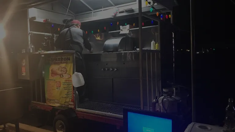a man standing in the back of a food truck