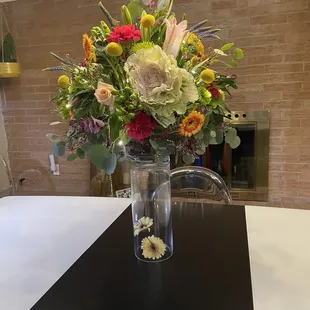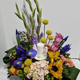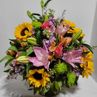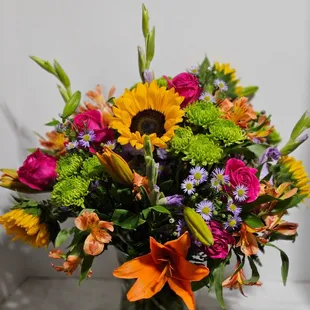 Beautiful flowers. Excellent communication and went way out of their way to deliver the flowers. Totally awesome service. Thank you so much.