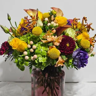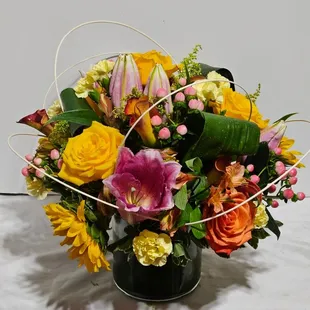 $349.99Product id: 100299 send our truly original arrangement to let your special someone embrace their inner interior decorator. Crafted by our expert florists from the freshest roses, lilies, stock, sunflowers and alstroemeria in a classic cylinder vase, its compact beauty is perfect for impressing friends and family or for simply dressing up any room in the home. Vibrant arrangement of roses, lilies, sunflowers, stock, alstroemeria, poms and monte casino, gathered with fresh salal artistically designed in an elegant glass cylinder vase; measures 6'h large arrangement measures approximately 13'h x 13'l medium arrangement measures approximately 12'h x 12'l small arrangement measures approximately 11'h x 11'l our florists handdesign each arrangement, so colors, varieties, and basket may vary due to local availability lilies may arrive in bud form and will open to full beauty over the next 23 days Photos at to.bloomnation.com?572419