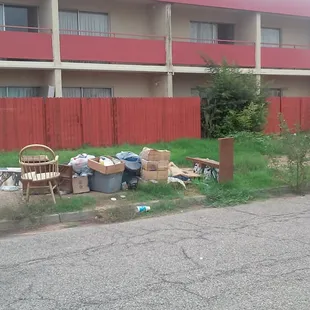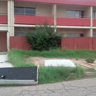 Trash is left for days on property until cleaned up. Long weeds and grass block sidewalks.