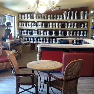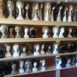 I purchased a lovely wig. Marcy was very helpful; however when I got home and looked at the bill she charged me $20 for the styrofoam wig head and $20 for the folding wig stand, I thought this was excessive. It's my fault I should have asked but I remember she didn't like it when I asked her the prices for the wigs I was trying on. It's a big purchase, good heavens! I tried on several wigs when I picked the one I liked that's the actual one I bought. It's not like she went in the back and brought me a new one in packaging. So I wonder, how many women tried on my wig before me? I was afraid to ask just washed it when I got home.