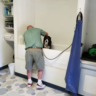 We go there to take the dogs and we wash the dogs are selves they have very nice tubs they give you shampoo and conditioners for your dogs brushes and then afterwards we could dry the dogs with blow dryer or take him outside and Air out in the little gate area