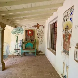 To describe this place using words would never do it justice. It's a place that needs to be experienced. Amazing, beautiful, captivating, charming, and enchanting, just can't capture the spirit of this historic picturesque hacienda nestled in the Santa Cruz valley framed by the stunning Santa Rita mountains. No wonder John Wayne and friends hid out here time and again. From the moment you drive through the entrance gate and mosey along the dirt road, passing a few grazing cows and horses, continuing up and down a hill passing the adorable Jeep garden to the house, you know you are about to have an unforgettable experience. Nisa and Jeff are like meeting your long lost family you couldn't possibly have lived without. They have that special gift of creating an inviting place where every guest feels like they are not visiting, but coming home to their very own hacienda, even if just for a few nights. Their love and knowledge of the history of the hacienda, and surrounding area, is evident with their stories of the people that called it home. The one of a kind artwork, murals that cover the courtyard walls done by the famous Mexican artist and bullfighter, Salvador Corona, transport you to another time. The views from the back patio at sunset are breathtaking, especially when you're sipping the delicious wine Nisa and Jeff pour you every night at happy hour. After sunset the stars take over the night sky winking and glimmering at you in a dazzling show of light. And if that's not enough, there is breakfast the next morning. Breakfast alone is worth the trip.The rooms, beautifully furnished with different themes, are cozy and comfortable. We stayed in the John Wayne room where echos of his time here are preserved in photos, books, and western decor. A side patio looks out over the blue water pool inlaid in mosaic tile surrounded by a garden like setting. What a treat to enjoy our morning coffee in the enclosed courtyard where the historic murals, trees, vines, and flowers capture the morning sun while listening to the myriad of chirps and musical trills of the many species of birds who call this home. There are other quiet and lovely patio areas where you can be alone if desired, or shared with a few family members or friends.We could have just stayed at the hacienda the whole time and have been happy, but there is so much to see and do around the scenic Santa Cruz valley you will not be bored. Venture out and take in the historical Tumacacori mission. There is shopping in the nearby artsy town of Tubac, and more shopping in colorful Nogales Mexico. You can plan a day trip through beautiful Patagonia to the spectacular Kartchner Caverns, and follow it with a tour of the Sonoita Elgin wine region. And that's just scratching the surface.With the ambiance, scenery and delicious breakfast, the only thing that puts a damper on the whole experience is the foreboding knowledge that soon you'll have to head back to the outside world. My friends and I have been to many beautiful places around the world, but there is something inherently special about this place. Maybe it's the long history of the hacienda that dates back well into the 1800's, maybe it's the unspoiled scenic beauty of the mountains and surrounding valley, or the owners Nisa and Jeff who pour their heart and soul into this place. Who can say? What we know for sure is, we will be back time and again, just like John Wayne.