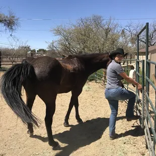 Loved this place. The people were so nice and the man I charge was so kind and helped me setup my Apple Pay. We arrived 15mins late because my father was slow to get ready due to a stroke he had in November last year. I let them know I was running a little late and they were very understanding and said they would start getting the horses ready. The price was not bad$75 an hour for a ride along with and instructor. They showed us how to brush the horse and but the blanket and the saddle. They would have showed us how to prepare the horses hooves but again we were late. We got in the horses and the had helmets for my young kids (11&13yrs). Even tho we didn't get the full hour we still had a lot of fun and we got to see the horses play in the water after. They treat the horses very kindly and with love. They mentioned that they only get ridden once a day if need be. They don't use their horses only for income. Which I thought was good because the horses aren't getting over worked. This is a very humane place and clean. Next time we come to Tucson AZ we want to come back to ride again, hopefully on a trail ride