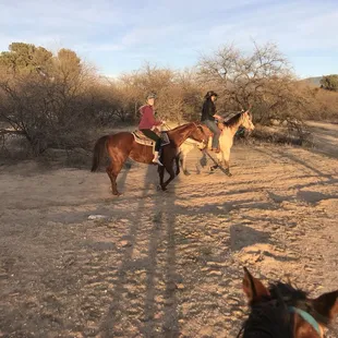 We didn't want to travel too far out of Tucson proper since we were staying in the University area, so we found Heart of the Horse and called/spoke with David. He was informative and answered all our questions and set an appointment for the next morning. The ranch is in a beautiful area and we were welcomed by a pack of friendly dogs, and a bit smaller pack of friendly ranch hands. We were assigned to our horses, who were fed, saddled, and ready for us. They were beautiful, sweet, and perfect horses for each of the three of us in my party. David and Ciara were our guides and were very helpful. David seemed to know exactly our strong points and weak points and shared the perfect, concise instructions we each needed. It was a beautiful trail that led us through a diverse terrain of native plants and trees. Our ride was around 8 in the morning, and the dew on the ground, easy breeze, moderate temps, and amazing mountain vistas made our ride fly by. We could not have been more happy! We appreciated that he took many digital photos of our group and shared them with us at no extra cost. My rating? 5 star for sure!
