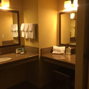 I love the exterior and the grounds, very well kept and lovely. The rooms need to be updated. The tiny bathroom was not well planned at all. One sink? There should be a sink at the vanity area outside the bathroom as well. The shower mead needs to be updated. We stayed at a time share in Virginia in May, with a full kitchen, two bedrooms and two baths and a living room for $500 fir a full week! It was amazing! The master bath was huge, with a large walk in shower, a vanity area with a stool and a magnifying mirror. It was amazing! You could learn a lot from this model! Memory foam mattresses are needed. There are two tiny trash cans in the room, not even standard small. More USB and electrical outlets are needed. The air conditioning worked, however, it was too cold. We set it at 75, and it got no higher than 67. So, I wasn't able to sleep because I kept having to get up to turn the air off and on to try to keep the room comfortable. This is ridiculous. I could have stayed home, spent a lot less money, and got a lot more rest!