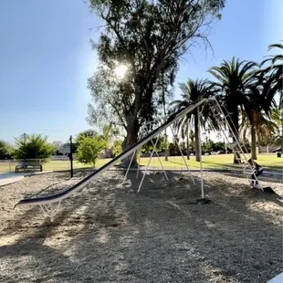 This is a lovely community park with lots of areas for different activities and one of the coolest things, an old vintage metal slide that my kids had a blast zooming down. Slide definitely recommended in the cooler times of the year because it is not shaded unless the tree is shading it, but very fun and cool, and there's lots of other shade throughout. The park was clean and well maintained with a large playground and although I have not been to the pool, from the outside looking in, it appears to be very nice. Parking was close by and easy and the park feels very accessible. It's conveniently located and felt pretty safe, and overall is a great park.