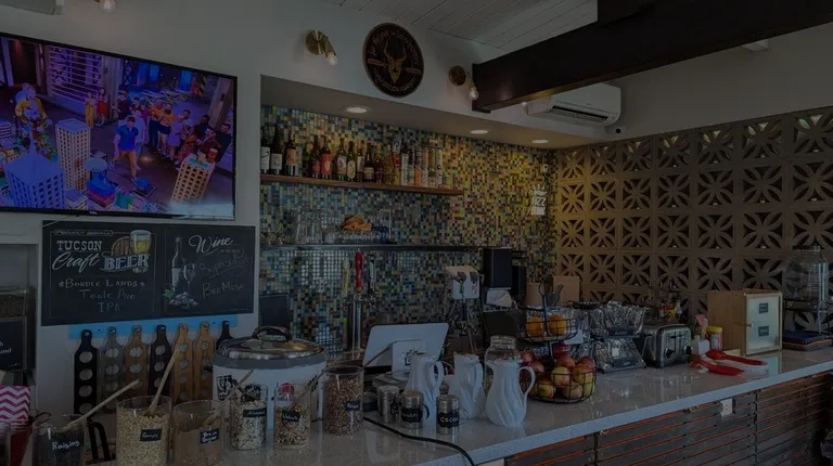 I am glad I got to experience this hotel, and would recommend it to young folks with pets for an easy place to stay on their cross-country roadtrip, but I would have to be convinced to come back. It's not for me now, but I know it would've been in my college era. Starting with the goods: the local flavor is unmatched. There is no doubt that the concept was born from a person who loves Tucson and has built community here. From the murals, to the Tucson-specific named parking spaces, to the variety of stained glass and paintings for sale, the typewriters inviting you to contribute to a ghost story if there had been any paper nearby, to the local finds "vending" machine, it all feels very intentional and I love the showcase of uniqueness. Complimentary laundry was an excellent option, and EV chargers are available by the pinball room! Upon arrival, staff made me feel welcome and check-in was a breeze. I also loved my complimentary first drink of local beer, and the PM staff were just really friendly and seemed like they enjoyed being at the hotel. The rooms are nicely decorated with enough places to sit, and the beds were so comfortable. Heated pool, gallery space with cozy couches, and the bar area in general make it a great place for friend groups and meeting new people, if that's your thing. But the bads: it's kind of impossible feel clean in the room - my bare feet were black after a few minutes of shuffling around to the shower, and the towels are as thin (and small) as paper. The AC unit is incredibly loud when it kicks on. The walls are so thin, I could hear word-by-word conversations of the college students staying on the next room over. There's a LOT of dogs and while owners do their best to get them to the small area in front of the gym/laundry room, there is a prevailing smell of pee and barking while dogs make friends - we were one of the furthest from the dog area and it was still audible. And the AM lobby staff were not so welcoming - they were flustered and pulled in multiple directions the morning we left, in that they were handling everything from coffee refills, oatmeal service, checkout, and guest complaints/evictions. They were trying their best, but the hotel should consider additional staff in the mornings. Water and ice machine were also a lil on the fritz when I and others were trying to fill bottles in the AM and the single lobby staff member had to try to help us troubleshoot too.All in all, I'm not mad that I brought my family to Hotel McCoy. But I unfortunately wouldn't bring them back.