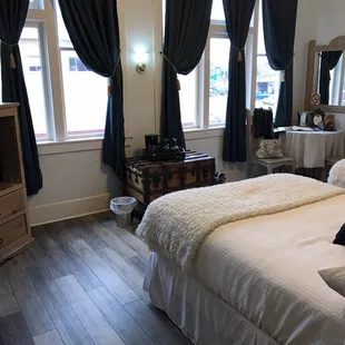 This was a nice stay in a100 year old renovated hotel. Hence the twin beds were two fulls. And quite soft. It did have a Ac split unit in the room. That worked well. The TV Was of the smallest variety. Twice the height of my iPhone 8. I think at the rate we paid , it should be 3x larger. But our showers were hot and everything was spic n span. And the Towels were fluffy and bright white. The old offer of free drinks at the Owners Restaurant downstairs is no longer available. The Restaurant closed. The check out time of 11 is generous. We Will be able to do the copper mine tour and get back to our room to clean up. This is right next door to the Copper Queen Hotel. Easy walking to shopping and dining. Well Parking. Now the problem is parking. There is none. Up the street is public parking for everyone. Shared with a Couple bars , a magic theater, and a gothic ax throwing studio. Popular!The official parking is in a free lot across a two lane road next to the I80 Highway Entrance.But you don't know that till you check in. Old town is the way to go!