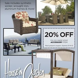 I stoped by at house'n garden to buy some patio chair covers and arrived at three minutes after four on a Saturday. I knew exactly what I wanted and it probably would've taken five minutes to make the sale.I was rudely told they were closed, "hours are hours "and we're not interested in your business. (The doors were wide open.) I went down the street to Patio Connection and they happily sold me what I needed. I won't be using the store ever again. The people at Patio Connection were very friendly!