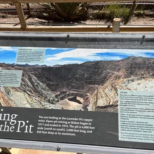 We heard about the pit so when we visited Bisbee we just had to stop. They have a very nice parking area where you can pull in and park safely and get out to view this monstrous hole in the ground. It is unbelievable how big this hole is. There are information boards under a small shelter where you can read all about what happened here and the impact the mining company had on the area. There are places in the fence where they cut out the fence fro you to take a clear picture. Just look, you can't miss them. There is a lot of history here so make sure you stop for a few minutes to see this.