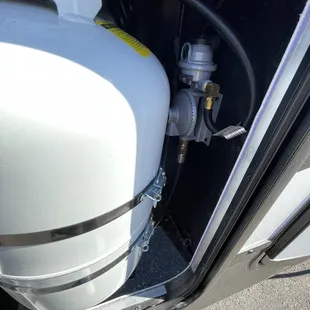 Service department bent up the frames when putting in the propane tanks can't even lock Both compartment doors to 2 propane tanks
