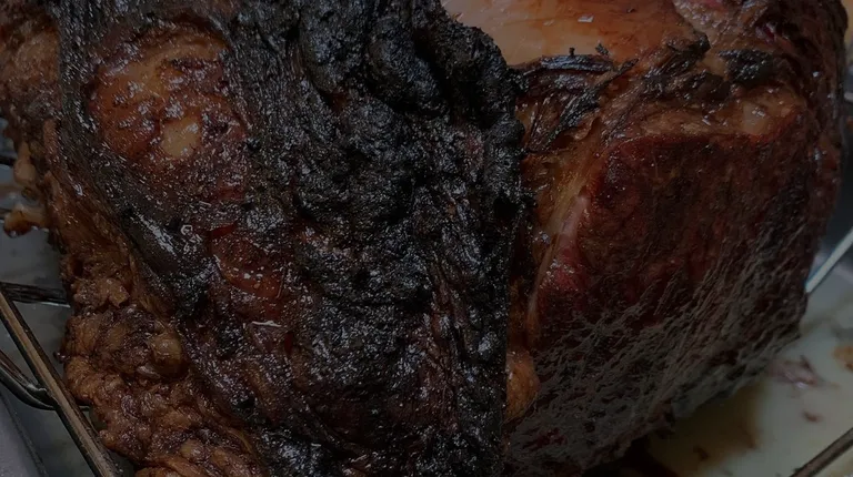 Frozen protein box with t bone steaks, hamburgers, pork chops, bone-in ribeyes, and chicken breast.