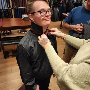 My boyfriends brother is getting married next week... we've been stressing on getting a suit in time and today all our problems were solved. The second we walked in Tiffany and her co-worker (I think her name was Andrea) were extremely helpful. Asked what we were looking for, the color, fit, and his size. We were blown away at the customer service. He was placed in a fitting room right away! The best part is they also do alterations at the store for a small fee, which only takes 7 business days. We will get it just in time for the wedding, and got the whole suit package & alterations for under 300. These women know their stuff, trust their opinions and you won't be disappointed ! It made the experience flawless.