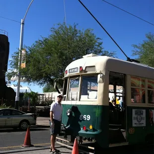 The Old Pueblo Trolley is great if you are spending some time knocking around this area. The trolley runs about 6-7 blocks down University from the U of A main gate, then turns south on 4th Ave for another 8 blocks or more and takes you through the restaurants, coffeehouses and shops that are commonly found in the vicinity of a major University. The trolley car itself is cool. I found out from the conductor that it was made in Japan around 1950. They bought it for scrap value but it was costly to move to the US. Much of the signage is in Japanese. The car is well crafted and comprised primarily of wood. The trolley is $1 to ride but Sundays are only .25. You can pretty much hop on or off anywhere along the route which is very convenient. The trolley ride really lends itself to a relaxing afternoon wandering around this neighborhood.