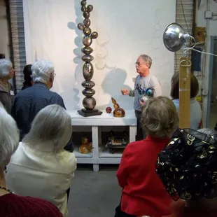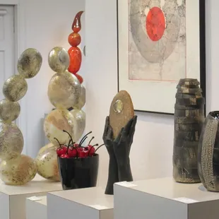 I recently attended an opening reception for a new show here. The new show and the regular exhibits were both worth checking out. The artists were there mingling with the crowd. The space is not large, but it was big enough to handle the small crowd that turned out for this event. There was wine, sparkling water, and a bowl of chocolate kisses, but that was it when it came to food and drink.If I had both more money and more space, I would definitely go on a shopping spree here.