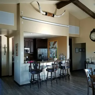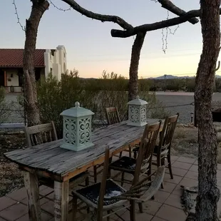 Rincon Creek Ranch is a relatively newly opened guest ranch and event venue. We were referred to it by the pastor at our wedding venue. The ranch has one and two bedroom casitas. They are not traditional casitas as I remember them. These are brand new houses with great construction and amenities. Our group stayed in a one bedroom and a two bedroom casita. They were beautiful. Gretchen and Bill did an awesome job with the casitas and all the little details. The casitas have their own feel to them but have in common great bathrooms, full sized washer and dryers, full kitchens, fire places, great linens, etc. They even left a basket of farm fresh eggs from their chickens in each of the casitas. I can't say enough about how nice the accommodations were. The ranch backs up to Saguaro National Forrest and the views are magnificent. I found myself sitting on the patio in a rocking chair drinking my morning coffee just taking in the view. They also have a community house where there is a pool table, entertaining area, DVDs, etc. Of note, there are TVs in each of the casitas but no cable or satellite tv yet. I actually find this a benefit. The only potential drawback of the ranch is actually getting to it. Part of the road is carved out of the desert. The packed dirt roads are susceptible to rain run off and is basically off roading the last mile or so to the ranch. While you can probably get your Prius up there, you need to have confidence and remember the route if you are driving it in the dark. It really isn't that bad but something to point out.We can't wait to go back to enjoy the ranch and Bill and Gretchen's hospitality.