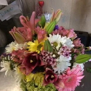 Very disappointed in the arrangement I had sent to my mother in law who had just lost her mother. The arrangement looked poorly put together as if it was rushed and thrown in a vase. I will definitely seek floral services elsewhere next time.