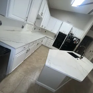 I was excited to begin my kitchen remodel. I purchased quartzite counter top. When it came time to install the counter top, the result was that my newly installed cabinet was noticeably blemished. Mind you they were $20k cabinets(From Birchard Kitchen Remodeling), it needed to be repaired. I'm waiting for the invoice to offset the cost. i recommend that as an owner. One should observe the entire process of the installation so there are no dramas.