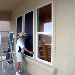 Dan was recommended by another solar screen installer who didn't feel comfortable making the screens for the windows on my home, due to stucco covering some of the window frame. Dan and his other technician installed some little pieces of angle to frames, and installed custom manufactured solar screens for all our windows and new screen doors, in a timely manner.. my wife and I couldn't be happier! His price was fair and the quality of his workmanship is on point:-))