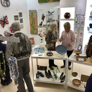 A variety of artists have their art on display and for sale. There is jewelry, paintings, clothing and many other types of interesting items!