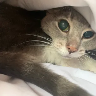 There's a dog under that blanket! Brought my baby to work with me after his surgery.