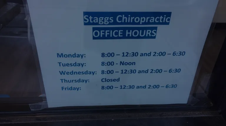 Been to many different chiropractors over the last couple decades and in different states, ranging from fantastic to not great. I tried several visits to Staggs Chiro, but the spine/hip issues I went there for weren't getting any better. On the plus side, a neck issue that came up in the same time was addressed. Unfortunately, I discovered months later from my insurance company that in the first visit, I was recorded as having a condition known to be difficult to diagnose due to so many other conditions having to be ruled out first. I have since been to another doctor who has not found reason to believe I have that condition at this time. Ultimately, this wasn't the best practice for me.