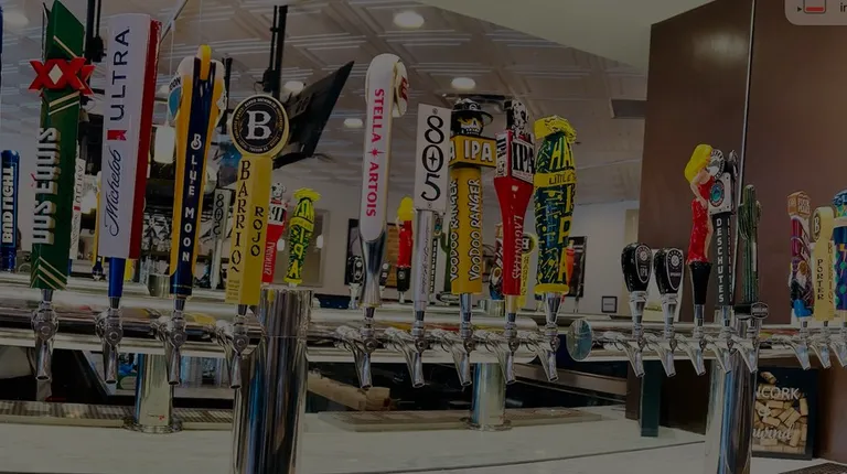 a row of beer taps