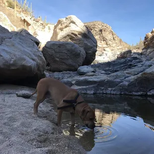 Beautiful hike off of Redington. There is a simple trail leading down to the riverbed. From there, you hang a left to hike to the series of falls. Be sure to take note of the trailhead at this point, as it is not very well marked for your return trip. A GPS unit would go a long way here. Once on the river bed, there is no designated trail, you just pick your path along the river with lots of scrambling atop rocks. Just before the tallest fall, there is a basin popular for divers. You have to scale a wall to get beyond this point - be sure to have good shoes with traction. Coming back down this wall can be treacherous and there have been some deaths in this area. It is beautiful and rewarding to take this last part of the hike, but exercise extreme caution.Notes:-this is a pet & kid friendly hike to a point. Not recommended if you plan on heading to the 80' falls. -easy to moderate hike from top of trail head to river bed and lower falls. Increases in difficulty as you progress along the canyon. -Be sure to take plenty of water and sunscreen with you. If you plan to refill your water bottle from the river, you will need to run the water through a good filtration system.-if you are going to the 80' falls, best to have a hiking buddy in case you get into trouble. -you may encounter naturists along the trail. Say hello, don't stare and move on.