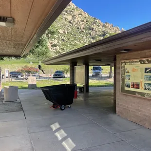Very pretty and nice shaded picnic areas to get out of that hot sun. Vending machines are fully stocked. Bathrooms are what you would expect.