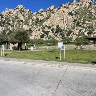 Boulders surround the rest area.