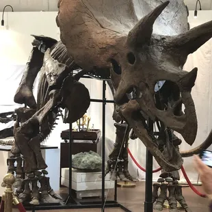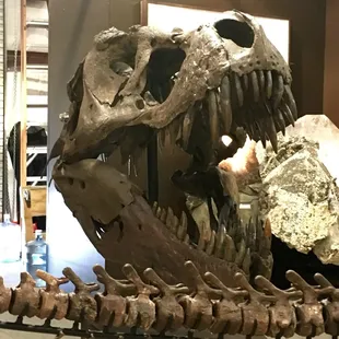 We're not fossil-folk, but enjoy visiting the Mineral & Fossil Co-Op each year around the time of the Tucson Gem show. We don't really buy anything...we just go for the entertainment value, which is why this review is 5 stars.This is a permanent building on Oracle, past a delightfully sketchy and run down array of 1960s motels (I'm talking about you, Notel Motel). In the few years that I've been the co-op is anchored by a large fossil dealer to the right of the entrance, and the dinosaur fossil exhibit at the far end of the entrance. Here, the fossils of various dinosaurs and mammoths are fused together with wires and displayed in their actual sizes. The shapes of embedded tortoises and giant fish are hung on the wall, while glass cases display antique polished rocks and minerals in the shapes of skulls, salamanders, and so on. There was also a large (maybe 6-7 feet?), exquisitely polished grey, Shiva Lingham rock on display, I overheard the desperate seller say to a potential customer, "This rock was found and polished in India. I usually sell this for $80,000, but today you can get it for $50,000." Buyer beware.The large store at the front of the entrance sells minerals, stones, shark teeth, embedded fossils, highly polished sinks, plates, bowls, platters and margarita bars of different stones and minerals with or without fossil embeddment. Prices are marked (overpriced) but can be negotiated. Its highlight is a mammothic-sized shark's jaw, as large as their display window. As I write this review, I take a thoughtful bite out of my breakfast croissant which is lovingly placed on purple plate embedded with what looks like a probably-fake garden-variety snail, I ponder on the millions of years of history that are displayed at the fossil co-op, and whether I could've talked down the purple plate (non-microwavable and dishwasher unsafe) by another dollar.