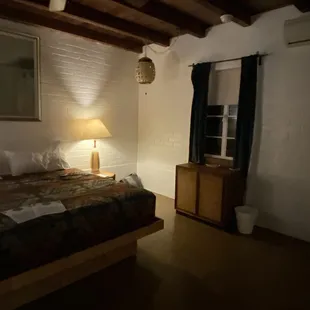 Very basic room. We only stayed 1Night instead of 2. Queen bed very soft - we couldn't get away from the middle of the bed The bed had a very thin cover over the sheet. No blanket. AC/heat unit on the wall was so loud we had to turn it off to sleep. We had to share towels. Only 2 bath towels, 1 hand towel and 1 washcloth. At least the room was clean.