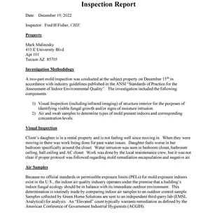 My daughter and her room mate moved in August of 2022. 2 bedroom 1st floor unit 101. My daughter was unable to move in to her bed room due to continued leaks. Was supposed to receive a credit and never did. upon finally moving in the apartment was always damp and musty. Manager confirmed to me that a mold test was done. When I my daughter came home for Xmas, I had a local mold company come in and test the whole apartment. There was mold in the walls, mold in the floor and mold in the air which the inspector does not occur often in Tucson due to low humidity. The inspector highly recommended that my daughter and her roommate move out until the building remediates the mold issues. I sent the results to the manager and she said that they had no two bedrooms available only 2 separate studios. The students did not want to live by themselves in the complex and we notified them them we were moving out. The manager sent me a six page document that they wanted us to sign and we refused as it was very one sided to them. I made a few changes sent it back and never heard from them again. I came in January with my daughter and roommate to move them out and into a new apartment. The building shut of the electricity to the unit and we were trying to finish in the dark. I had spoken and emailed there management office in phoenix and submitted all of the documentation from the Mold inspector. Never heard back until a collection agent contacted me for back rent. Per the document the building they wanted me to sign was I could not talk badly about the building in a review. I will find another review site were I can can upload the pictures and mold inspectors report. My daughter was tested and she had mold in her system and potentially could of died from the exposure. I would never let my child live there