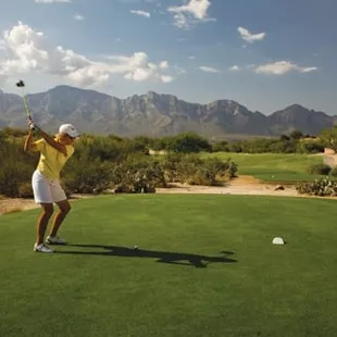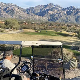 Beautiful views of the Catalina Mountains. Maybe not the place for you, if you are serious golfer. Lots of older people prowling the golf course. One man actually picked up my golf ball, put it in his pocket, then jumped in his golf cart and rode away! My ball is in play! So strange. Also, they're driving all around the golf course path on their golf carts and not playing golf. There were a few riding the path on scooters, and a few people walking their dogs. Never, have I ever, played a golf course that was so busy with non-golfers! Yikes!