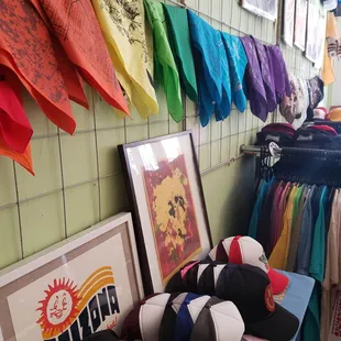 Many shirts, printed locally at Tanline Printing, featuring artwork from local artists