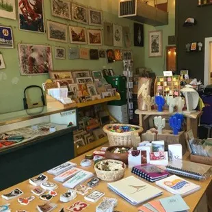 Lots of printed goods and little items that make sweet presents: stickers, notebooks, earrings...