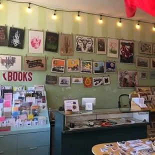 This is such a cute hidden gem of downtown. You can get amazing little pieces of art for just $1! This is owned by TanLine Printing, a closed to the public screen printing shop that does jobs for local businesses and even bands like AJJ (I was SO surprised to find a Pat the Bunny shirt in their discount pile). They've got some cool souvenirs, I wish I took more pictures but even in the $1 pile there were cool Tucson cards and such. Stickers were $3 each and some kind of deal like $5 for 2? Even the dollar section had a deal of like 10 for $7. They even have little patches for $1 that say Tucson, some of them currently had other designs like a snow globe of the desert. They also have shirts, including a discount $5 and $10 section in the back. One of my favorite parts besides the $1 section where i got these amazing monster prints on book pages (I'll have to take pictures) and a cute dog pooping and saying "privacy please!" Was the Zine and Comics section!Zines are little self published books and they had a cute selection of them. Some were very simple text and others were very creatively illustrated. They also had some old free tiny town newsletters. I highly recommend giving this shop a peek for some local insight and cute gifts / souvenirs!